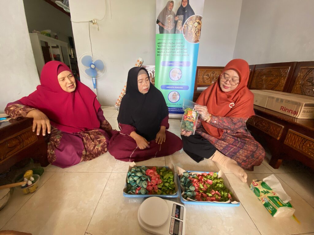 .Sidoarjo, 12 Februari 2026 – Universitas Muhammadiyah Sidoarjo (UMSIDA) kembali melaksanakan kegiatan Pengabdian kepada Masyarakat (Abdimas) bersama mitra UMKM Kuping Gajah yang berlokasi di Desa Boro, Kecamatan Tanggulangin, Kabupaten Sidoarjo. Kegiatan ini dilaksanakan pada pukul 09.00 – 11.00 WIB sebagai bentuk komitmen perguruan tinggi dalam mendukung penguatan usaha mikro serta peningkatan ekonomi warga Ranting Aisyiyah