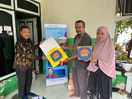 Kegiatan Abdimas ini menjadi bagian dari upaya berkelanjutan Umsida dalam mendorong peningkatan kapasitas UMKM mitra, khususnya dalam aspek branding, inovasi produk, dan penguatan nilai tambah. Kegiatan diawali dengan penyerahan bantuan berupa 1.000 box kemasan kepada UMKM Babakaran Raos. Bantuan tersebut diserahkan secara simbolis oleh Lukman Hudi, S.TP., M.MT selaku anggota Tim Abdimas Umsida. Penyerahan kemasan ini diharapkan dapat mendukung peningkatan citra produk serta memperkuat strategi pemasaran UMKM agar lebih kompetitif di pasar.