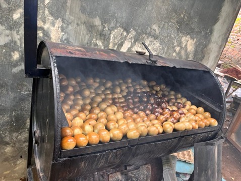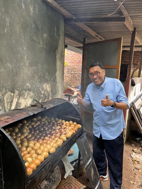 Kegiatan serah terima bantuan ini merupakan bagian dari program pengabdian kepada masyarakat (Abdimas) yang bertujuan untuk meningkatkan efisiensi proses produksi serta kualitas produk telur asin asap. Sebelum pelaksanaan serah terima mesin oven asap, tim Abdimas terlebih dahulu melakukan evaluasi terhadap mesin pengasap telur asin yang sebelumnya telah diberikan melalui program hibah pada tahun sebelumnya. Berdasarkan hasil evaluasi tersebut, diketahui bahwa mesin pengasap yang telah ada masih dapat difungsikan dengan baik dan optimal. Selain itu, produk telur asin asap yang dihasilkan terbukti memiliki kualitas yang sangat baik, baik dari segi rasa, aroma, maupun tampilan, sehingga memiliki banyak peminat di pasar.